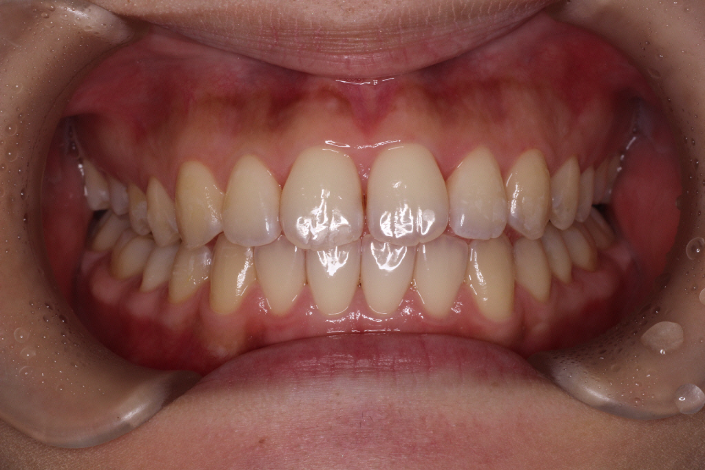 下が1回目のインビザラインが終わった時の写真です。気になっていた前歯のねじれはきれいに並びました。