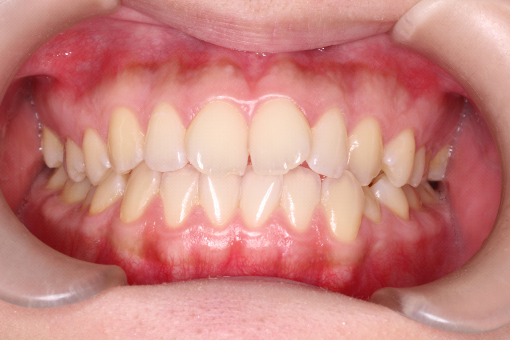 ・長期間にわたって重なっていた歯は、歯間接触下部の歯肉組織が失われている場合があり、歯列矯正を行うことで、「ブラックトライアングル」が発生する可能性があります。