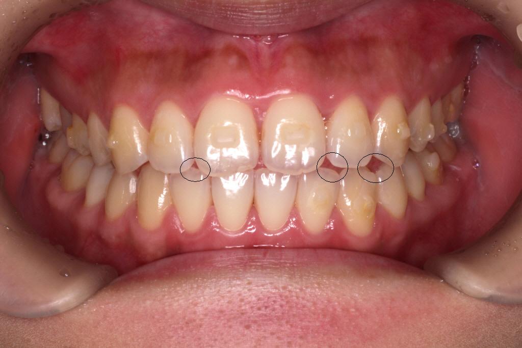 ・患者様が飲食後適切に歯磨及びフロス等の補助器具を行なわなかった場合、 虫歯・歯周病・歯肉炎・脱灰等が生じる可能性があります。当院では矯正の途中で虫歯ができた場合他院様を紹介させていただきます。