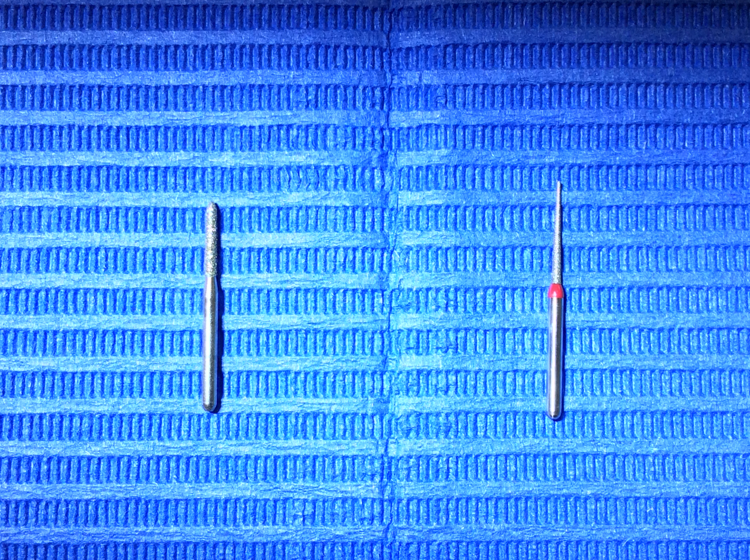左が虫歯を削るバーで、右が専用の細いバーです。↓