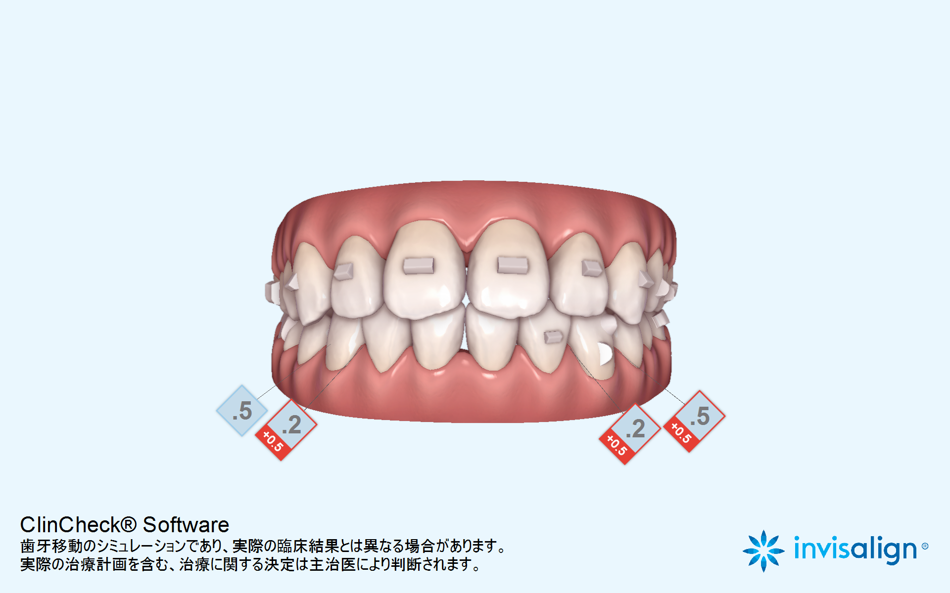 今マウスピース型カスタムメイド矯正装置(以下インビザライン)にて矯正治療中です。