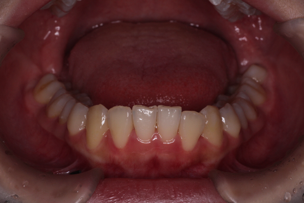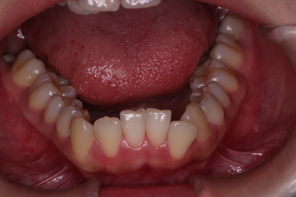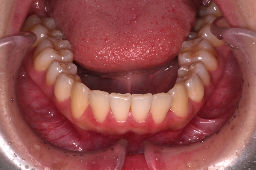 下の歯も同様に歯が内側に倒れているので、広げる必要があります。