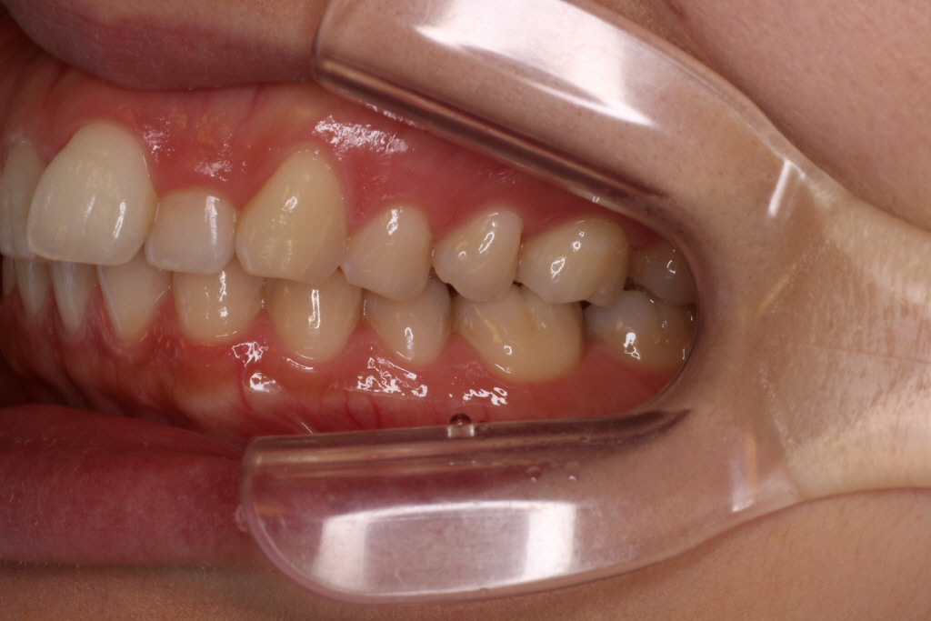 つまり右の咬み合わせは出っ歯の咬み合わせなので上の歯を後ろに下げる必要があります。