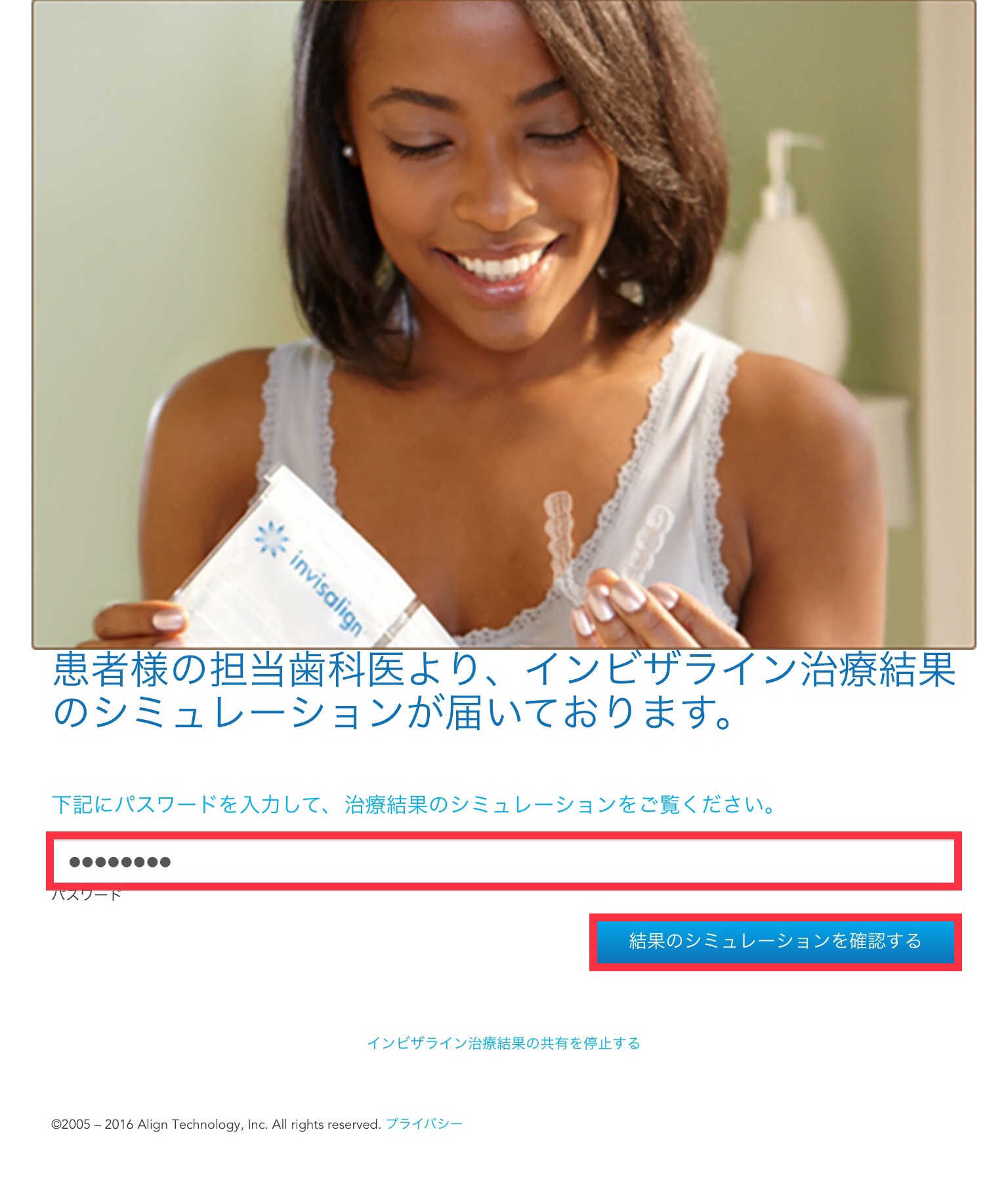 移動した専用サイトには、パスワードを入力する部分があります。
