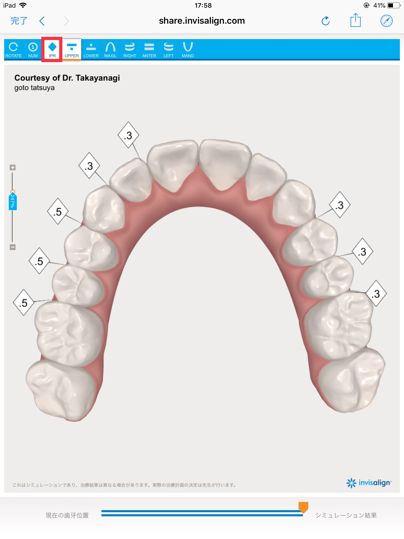 この数字はIPRといって歯と歯の間を削る量が表示されています。