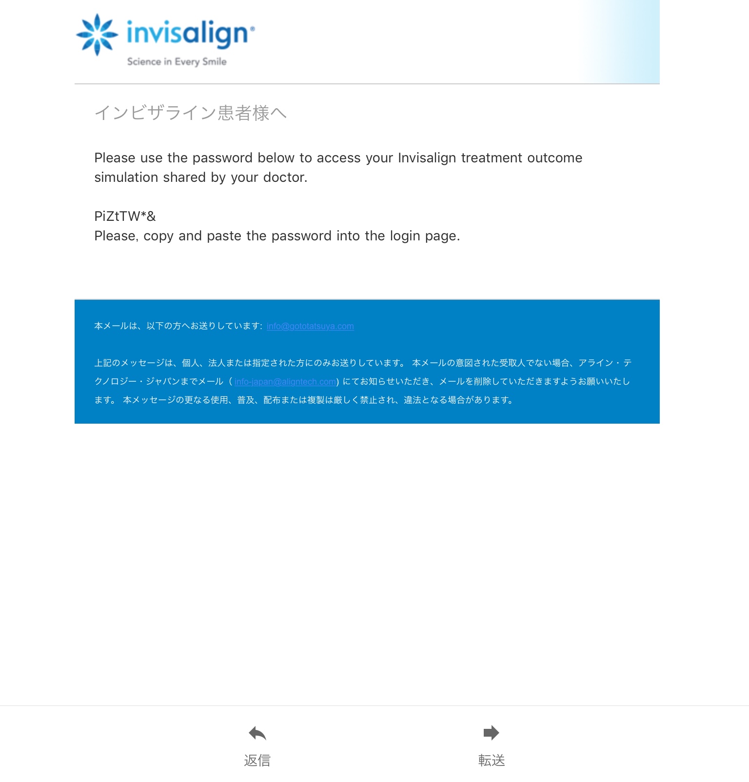 2通目はアウトカムシュミレーションを確認するためのパスワードが記載してあるメールです。