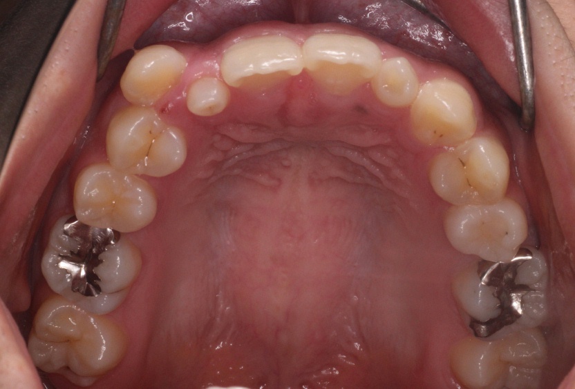 日本人は特に上顎の一番目の歯に比べて著しく二番目の歯が小さいことが多いです。(下図)