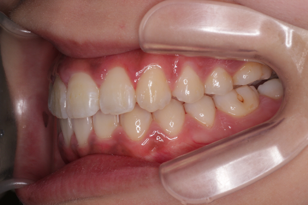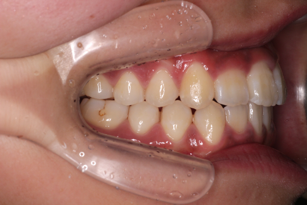 ③ 側方の噛み合わせが上1本に対して、下2本になりました。きれいに改善されました。